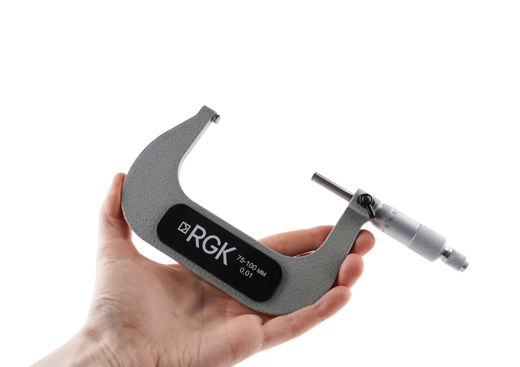 RGK MCM-100 представляет собой ручной измеритель внешних размеров с гладкими контактными поверхностями, ценой деления 0,01 мм и рабочим диапазоном от 75 до 100 мм.